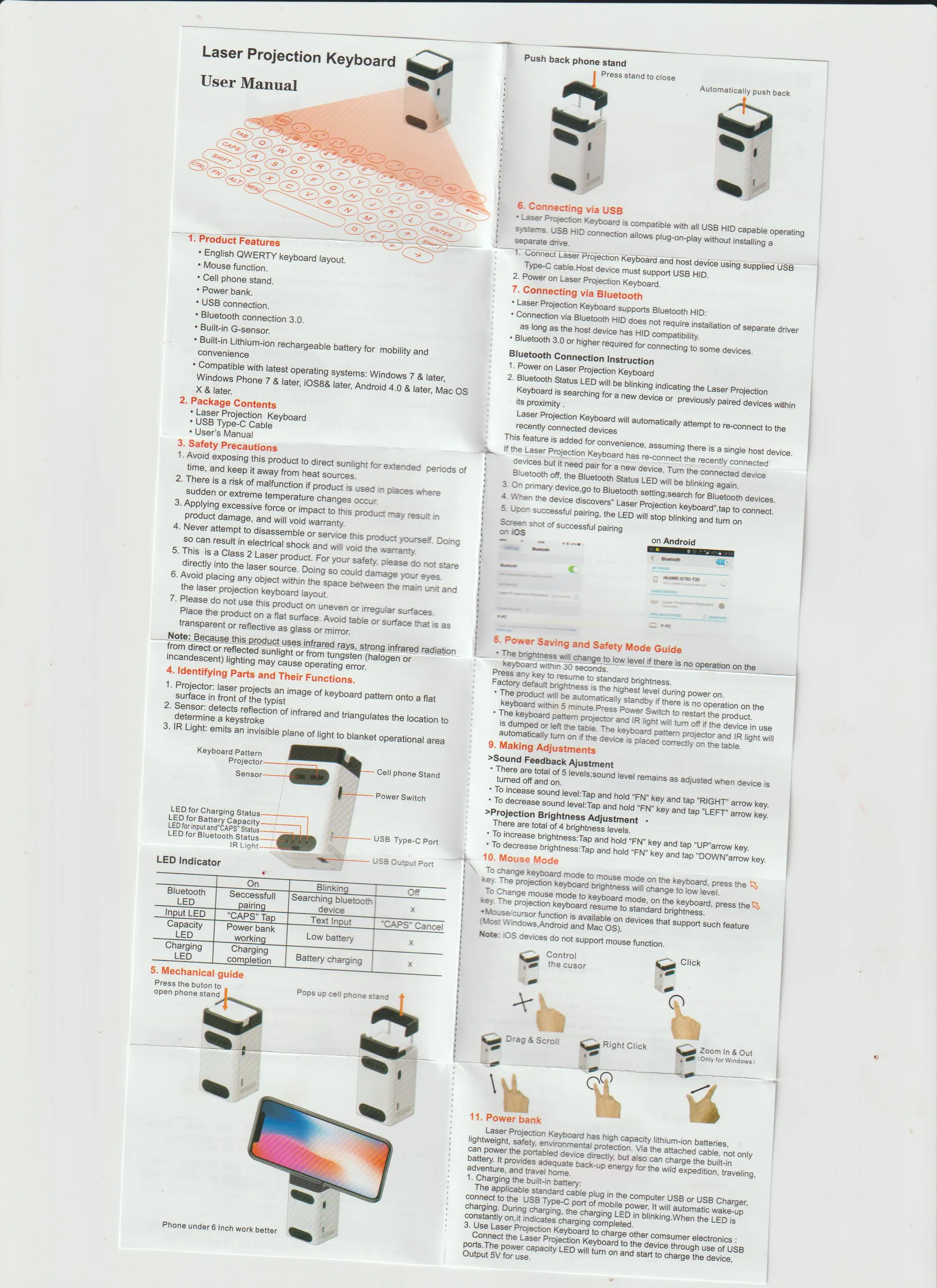 Wireless Virtual Laser Projection Keyboard IR Touch With Power Bank & Hidden Smart Phone Bracket